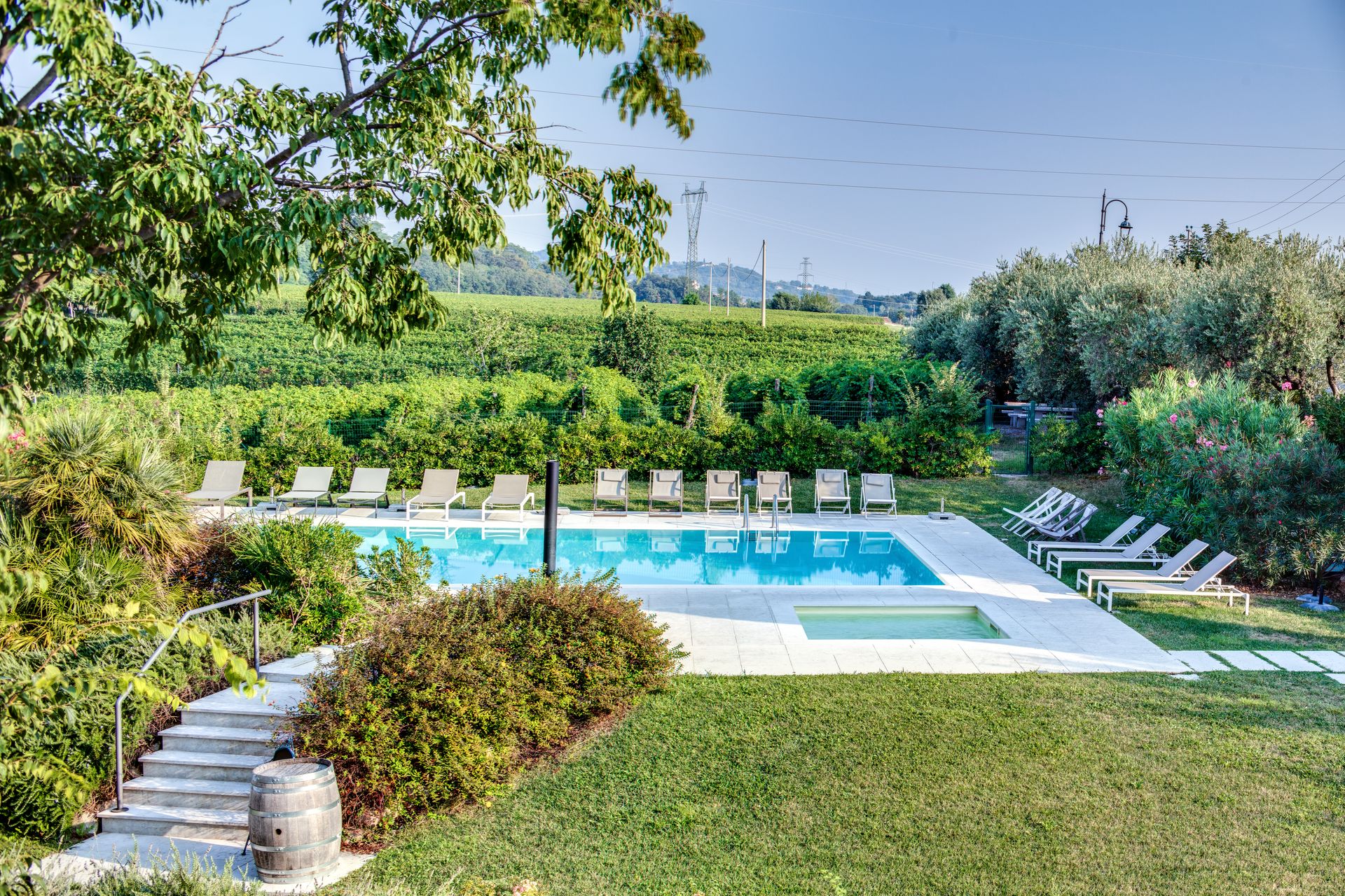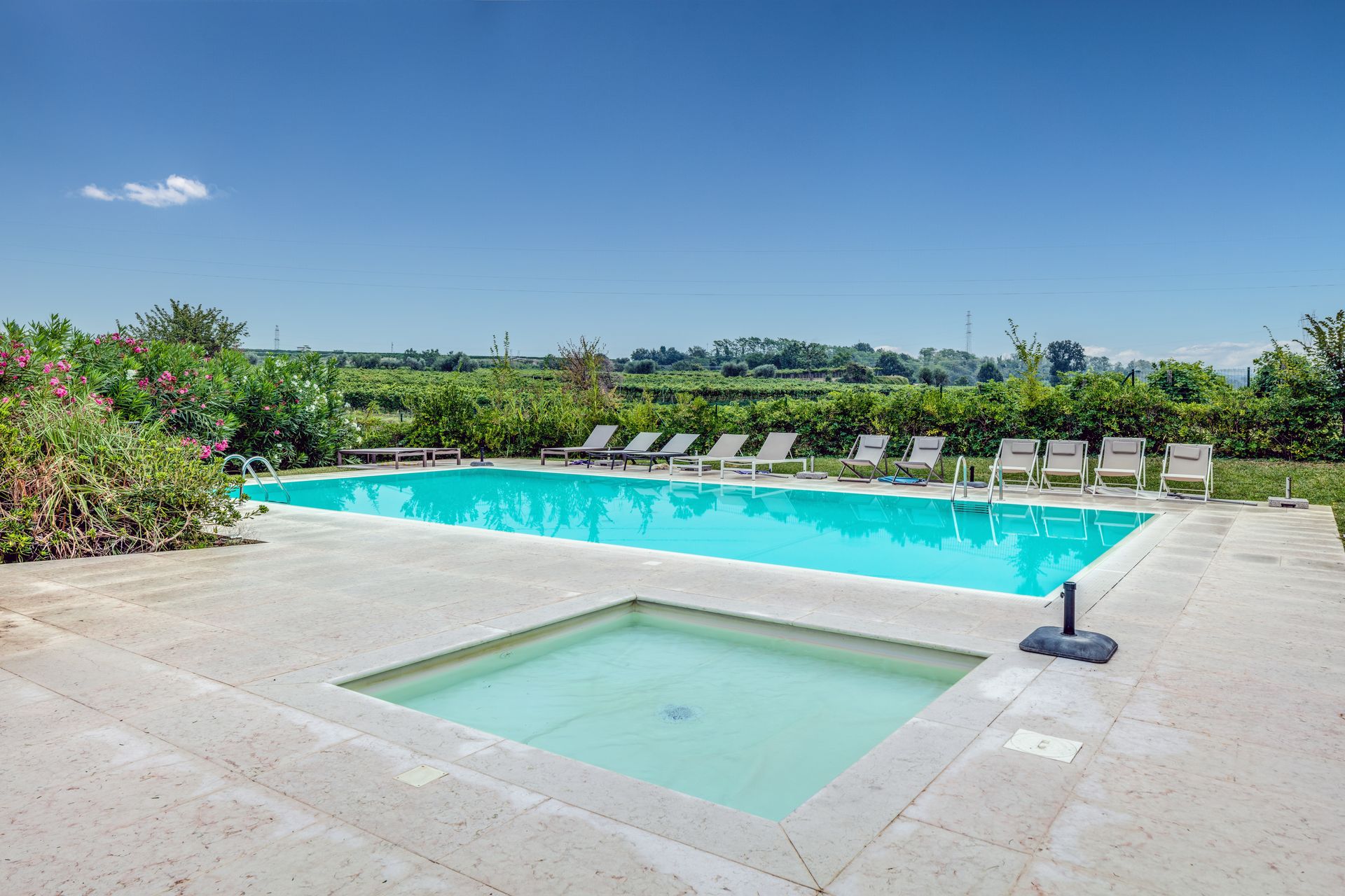 La tenuta si apre su un ampio giardino con due piscine, una principale e una dedicata ai bambini, creando un’atmosfera tranquilla per vivere le giornate all’aria aperta. L’area barbecue invita a condividere momenti semplici e piacevoli, che profumano di vacanza e tempo ritrovato. Gli animali domestici sono ammessi su richiesta.