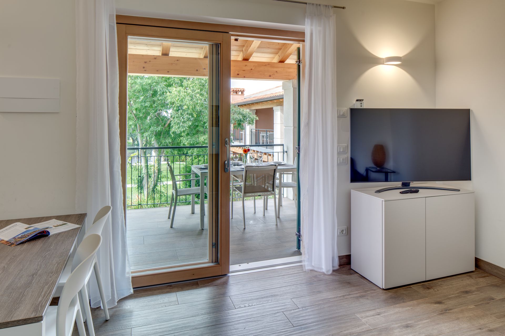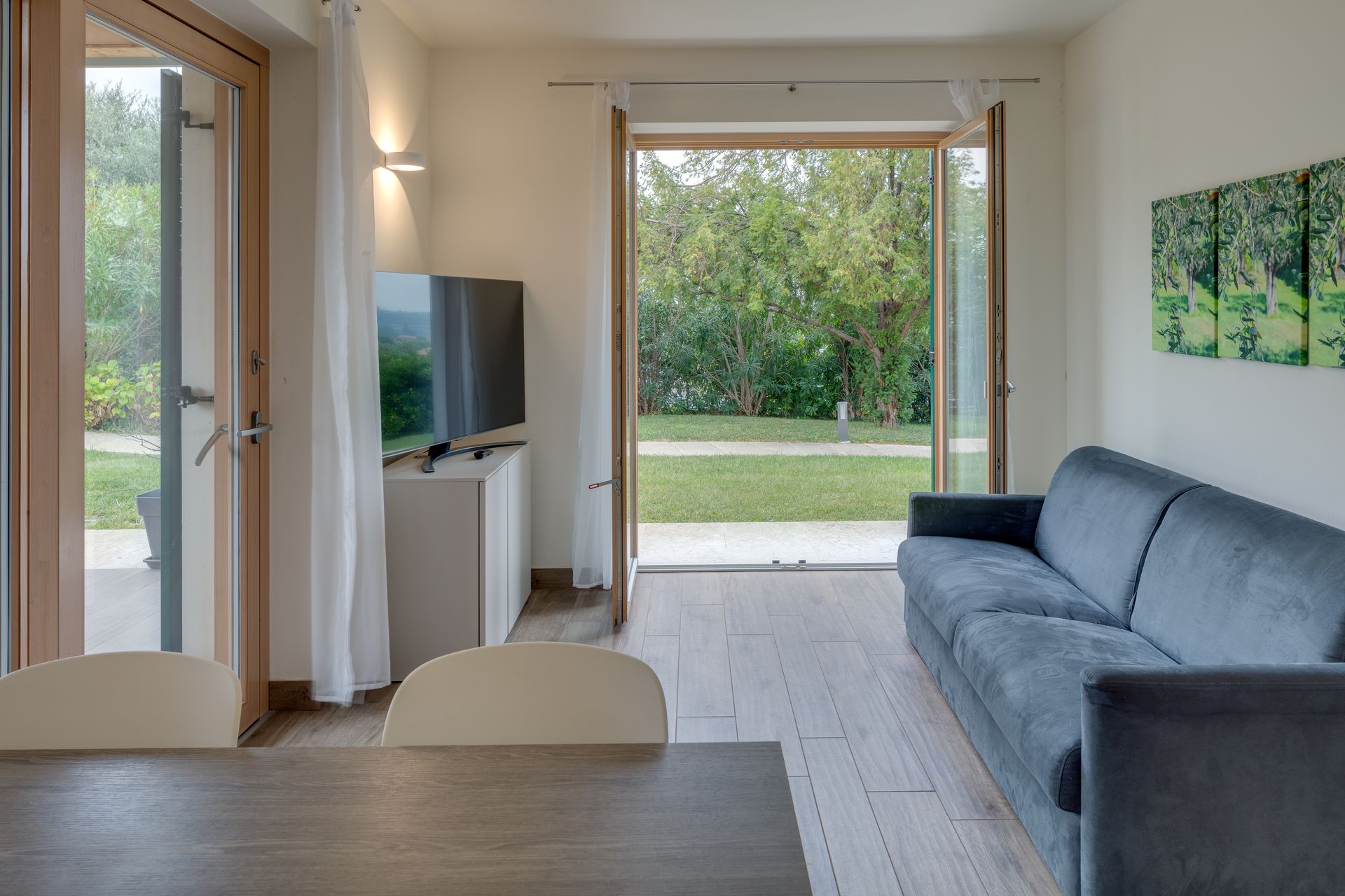 I 14 appartamenti, moderni e accoglienti, offrono angolo cottura attrezzato e spazi curati. Balconi e terrazze arredate permettono di godersi il piacere di fermarsi e respirare, trasformando ogni soggiorno in un’occasione per riconnettersi con la natura e con sé stessi.